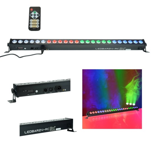 to profesjonalne oświetlenie z mocnymi, 24 diodami RGBW LED 4 w 1. Podczas korzystania z urządzenia w trybie autonomicznym mamy do wyboru kilka wgranych programów lub możemy aktywować urządzenie w trybie reagowania na dźwięk. Urządzenie pracuje także w trybie DMX, lub w master slave, umożliwiające szeregowe łączenie podobnych jednostek. Natomiast dodatkowe wyjście IEC umożliwia podłączenie łańcuchowo kliku belek ze sobą.