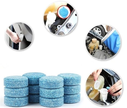 Należy rozpuścić 1 tabletkę w 4 litrach wody bezpośrednio w zbiorniku płynu do spryskiwaczy