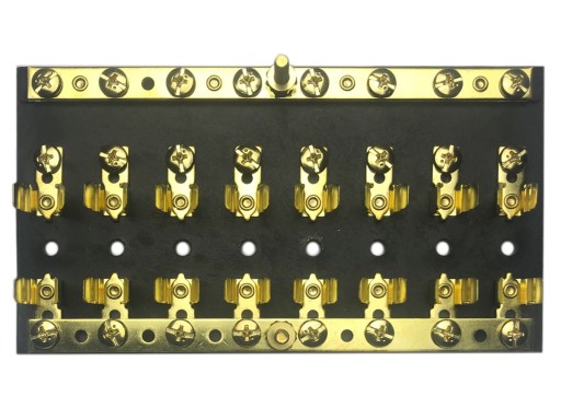Listwa na 8 bezpieczników rurkowych. Podstawa wykonana z bakelitu.
