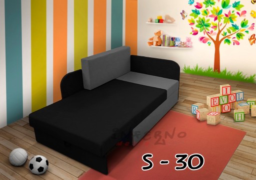 - Łóżko idealnie nadaje się do pokoju dla dziecka, ze względu na proste wykonanie oraz barwną tkaninę z której jest wykonane.