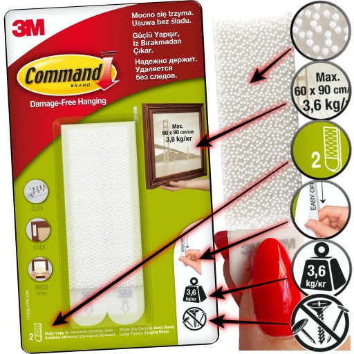 COMMAND Rzepy Duze do Wieszania Obrazów 4 szt 3,6k
