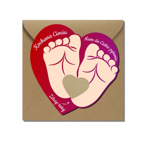 Oryginalny sposób aby dziecko poprosiło swoją ciocię i wujka, by zostali jego Mamą Chrzestną i Ojcem Chrzestnym. Aby odsłonić pytanie należy zdrapać złote serduszko.