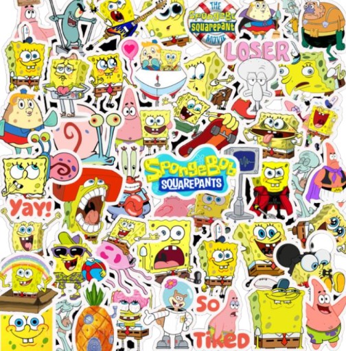 - 50 sztuk wyselekcjonowanych i unikatowych naklejek z serii Spongebob i jego przyjaciół,