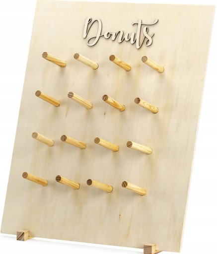 Drewniana Ściana na donuty z 16 kołkami do samodzielnego zamontowania.