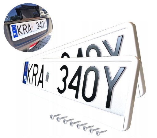 RAMKI NA REJESTRACJE METALIZOWANE BIAŁE + WKRĘTY