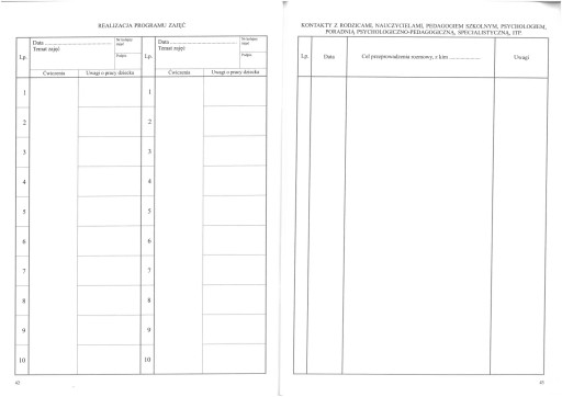 Dziennik przeznaczony do prowadzenia zajęć specjalistycznych z uczniami mającymi trudności w opanowaniu umiejętności czytania i pisania spowodowanych deficytami rozwoju funkcji percepcyjno - motorycznych jako jednej z przyczyn niepowodzeń szkolnych.