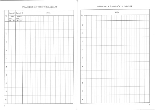 3. Wykaz obecności uczniów na zajęciach