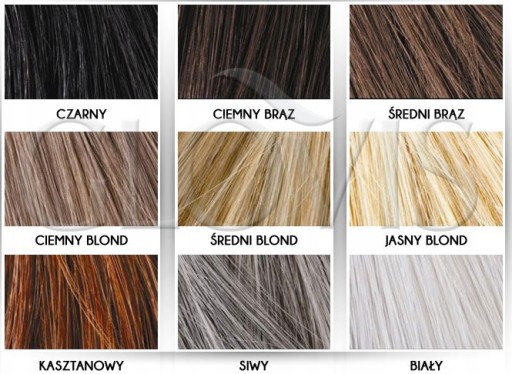 Kosmetyk GLOVIS dostępny jest w 9 naturalnie wyglądających kolorach. Kolory te można ze sobą łączyć aby uzyskać niemal dowolny odcień. W większości przypadków nie jest to jednak konieczne, gdyż jeśli nawet włókna GLOVIS są trochę inne niż kolor włosów, delikatnie je rozjaśnią lub przyciemnią. Włosy natomiast będą wyglądać całkowicie naturalnie. Poniżej przedstawiona została pełna gama dostępnych kolorów.