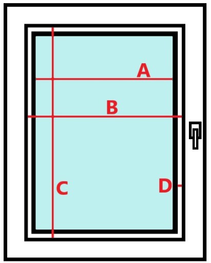 (A) Szerokość samej szyby bez uszczelek (instrukcja dokonania pomiaru znajduje się powyżej)