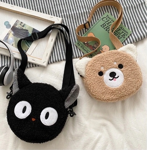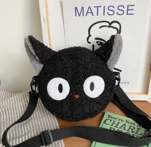 SASZETKA PORTMONETKA NA PASKU PLUSZOWA CZARNA KOTEK