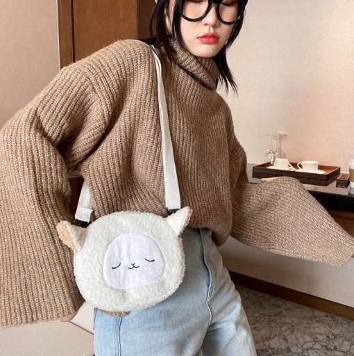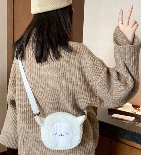 SASZETKA PORTMONETKA NA PASKU PLUSZOWA BIAŁA OWIECZKA