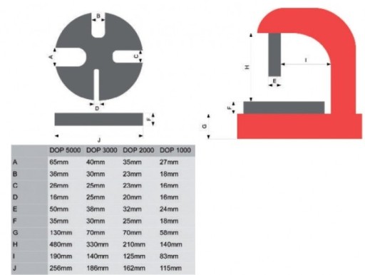 Dane techniczne prasy ręcznej warsztatowej DOP 1000: