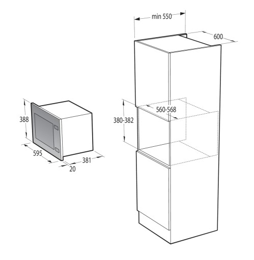 - Wymiary wnęki (DxSxW) (min.-maks.): 56-56,4 × 59-60 × 55 cm