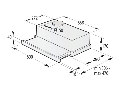 - Rodzaj: Okap teleskopowy kuchenny do zabudowy