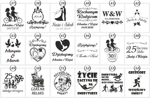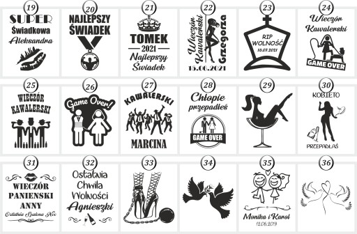 - w wiadomości dla sprzedającego napisz jakie wybierasz numery wzorów na wszystkich elementach zestawu wraz z danymi jakie się mają w nich zmienić (imiona, daty, liczby, itp)