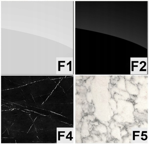 Wszystkie blaty dostępne są wyłącznie w wykończeniu matowym, dzięki czemu idealnie komponują się z resztą mebli.