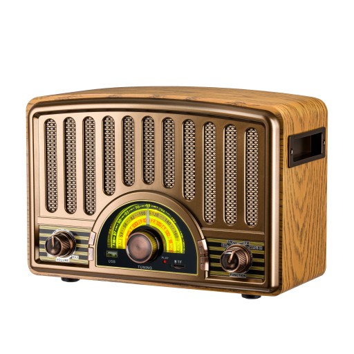 Obudowa stylizowana na orzechowe drewno, maskownica głośnika pokryta plecionką, niesamowity regulator fal radiowych w kształcie anologowej wskazówki zegarowej, pokrętła w miedzianym kolorze. To wszystko sprawia, że nasze radia są ozdobą każdego wnętrza.