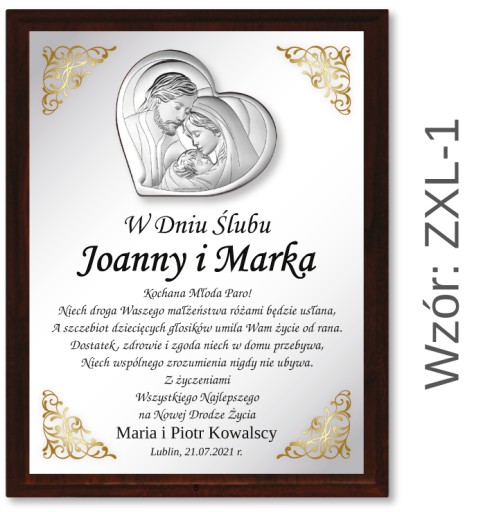 PREZENT na ŚLUB ŚLUBNY ŻYCZENIA dla MŁODEJ PARY PAMIĄTKA WESELE XL +pudełko