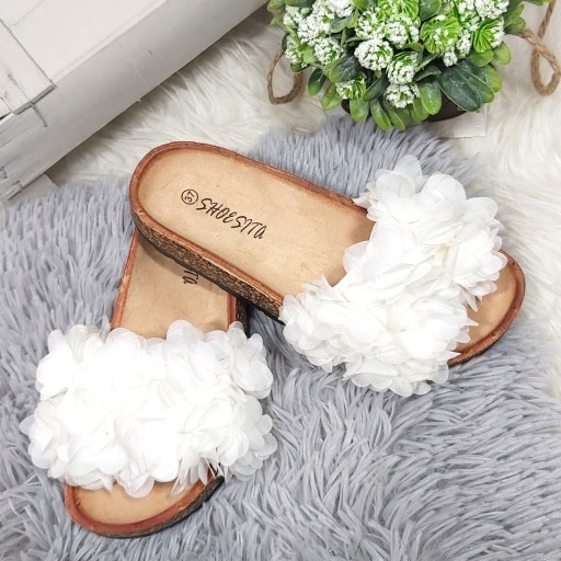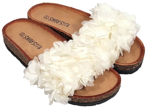 ТАПОЧКИ С ЦВЕТАМИ НА ПРОБКЕ - белые, размер 38
