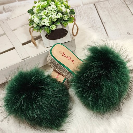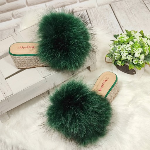 Oryginalny model - ciekawe połączenie naturalnego futra i surowej faktury sznurka. Wygodne klapki z miękką wkładką, które dodadzą wzrostu i pozwolą pięknie wyeksponować łydkę. Dzięki szerokiemu paskowi klapki dobrze trzymają się nogi. Gęste naturalne futro farbowane na piękny zielony kolor wspaniale prezentuje się w trakcie ruchu. Zgrabny, lekko kwadratowy nosek klapka wyraźnie nawiązuje do najnowszych trendów mody. Futro przyciąga spojrzenia i jest niebanalnym uzupełnieniem miejskich stylizacji. Zakosztuj odrobiny luksusu na co dzień!
