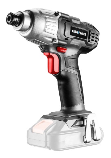 Zakrętarka GRAPHITE, współpracująca z akumulatorami 18V Li-Ion GRAPHITE Energy+. Urządzenie przeznaczone jest do wkręcania i wykręcania wkrętów i śrub w drewnie, metalu, tworzywach sztucznych. Pozwala ono na pracę z dużymi prędkościami (do 2200 obr./min) oraz zapewnia wysoki moment obrotowy (180 Nm). Moment obrotowy jest generowany w postaci chwilowego udaru obwodowego, więc oddziaływanie urządzenia na ręce operatora podczas wkręcania jest niewielkie. Uchwyt narzędziowy 6.35 mm (1/4") przystosowany jest do pracy z najbardziej popularnym typem końcówek wkrętakowych/bitów. Urządzenie wyposażono w elektryczny hamulec silnika pozwalający na szybkie zatrzymywanie wrzeciona oraz diodę LED, podświetlającą miejsce pracy. Ergonomiczny kształt uchwytu i zoptymalizowana długość całkowita zakrętarki pozwalają na efektywną pracę w każdych warunkach.