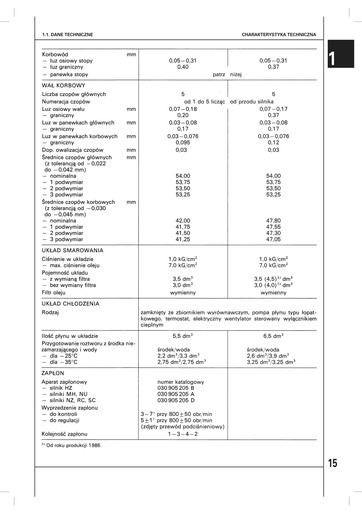 Opisy napraw uzupełniono danymi technicznymi i regulacyjnymi, tablicą momentów dokręcania połączeń oraz schematami elektrycznymi.