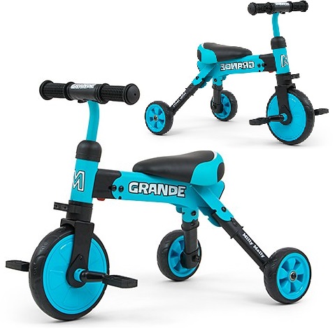 Rowerek dla dzieci 2w1 Grande NIEBIESKI (funkcja rowerka biegowego i klasycznego) - firma Milly Mally