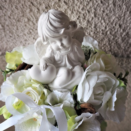 Jeśli chcesz w piękny i oryginalny sposób ozdobić nagrobek bliskiej Ci osoby to zdecydowanie Nasz stroik na grób z Aniołkiem jest idealnym dla Ciebie produktem!