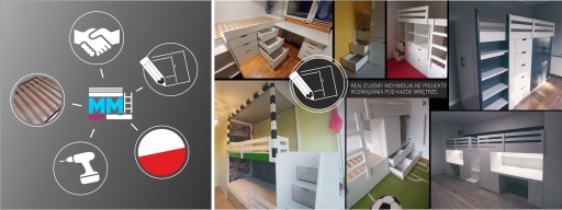 Produkujemy łóżka z powierzchniami spania od 160 do 200 cm. Długość materaca nie musi być taka sama na górnym i dolnym łóżku. Ostateczne wymiary zależne są od wybranych długości powierzchni spania.