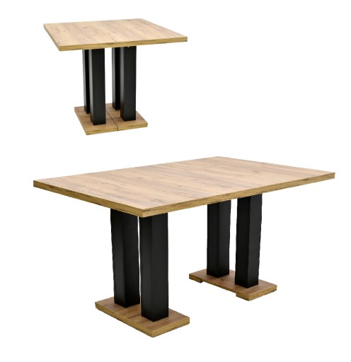 Wymiar stołu to 80x80 cm, z możliwością rozłożenia do 200 cm.