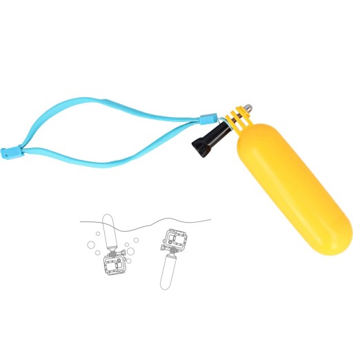 Wyjątkowy wypornościowy uchwyt do kamer sportowych sprawi, że nie musisz się bać o zgubienie swojej kamery. Po wpadnięciu do wody kijek będzie dryfować na jej powierzchni a Twoja kamera będzie bezpiecznie unosić się na wodzie. Boja ułatwia wygodne trzymanie kamery a smyczka na nadgarstek stanowi dodatkowe zabezpieczenie.