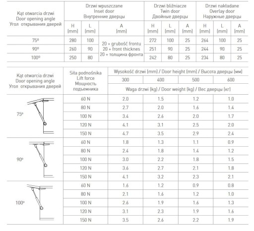 Podnośnik zapewnia płynność oraz amortyzacje przy otwieraniu szafek. Jego mechanizm zapobiega bezwładnemu opadnięciu frontu. Wykonany ze stali w kolorze szarym, znajdzie swoje zastosowanie w klapach barkowych o wysokości frontu do 600 mm. Orientacyjny kąt otwarcia wynosi 75- 100° w zależności od użytego zawiasu. Podnośniki GTV charakteryzują się bardzo dużą żywotnością oraz sprawnością działania.
