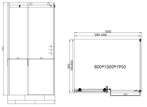 Душевая кабина 80х100 8мм поддон из камня ЧЕРНЫЙ