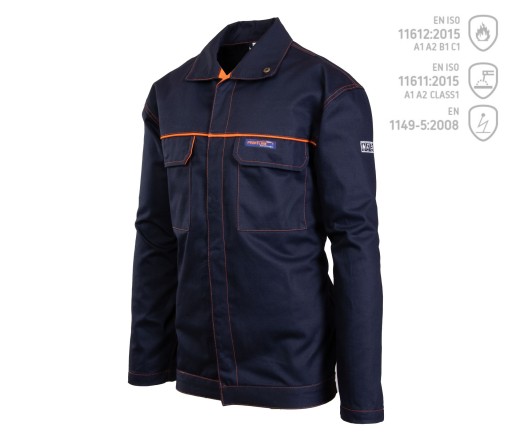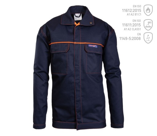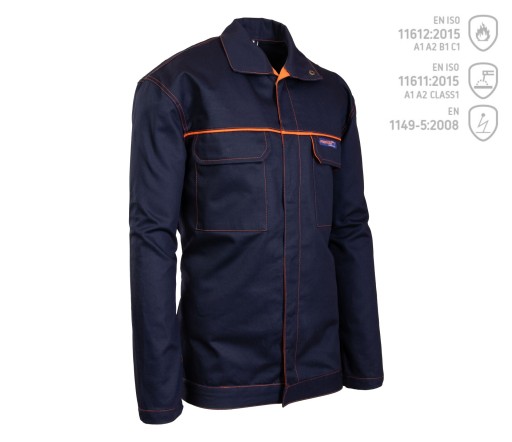 Wyrób jest zgodny z normami: EN 1149-5:2008 , EN ISO 11612:2015 A1 A2 B1 C1 , EN ISO 11611:2015 A1 A2 CLASS 1