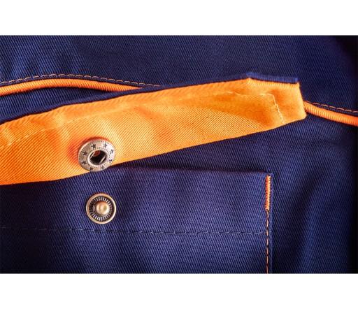 Odzież ochronna rozpraszająca ładunek elektrostatyczny dla spawaczy, chroniąca przed czynnikami gorącymi i płomieniem.