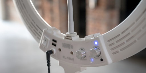 Lampę pierścieniową LED Newell RL-18A wyposażono w dwa porty USB umożliwiające wygodne ładowanie innych urządzeń. Dzięki temu nie musisz martwić się o rozładowany akumulator w aparacie lub świecącą się na czerwono ikonę baterii w smartfonie. W razie potrzeby po prostu sięgnij po odpowiedni przewód i podłącz swój sprzęt filmowy do lampy, nie rozglądając się już na boki za powerbankiem lub dodatkowym przedłużaczem.