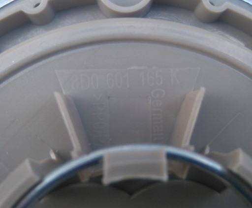 Nowe dekielki AUDI 8D0601165K, GERMANY, średnica 146mm, środek kolor grafitowy, posiadają folie ochronne, zapakowane fabrycznie.