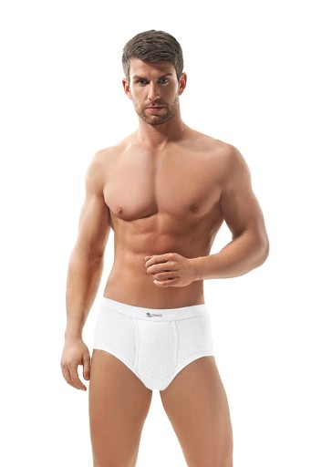 Klasyczne slipy męskie z rozporkiem. Wyjątkowo wygodne! Wykonane z dzianiny bawełnianej o strukturze prążka, która zachowuje kształt produktu i łatwo dopasowuje się do sylwetki. W pasie zamiast gumy zastosowano tzw. elaston (miękka dzianina ściągaczowa z bardzo wysoką domieszką lycry) produkowany na maszynach okrągłych o średnicach dostosowanych do poszczególnych rozmiarów.