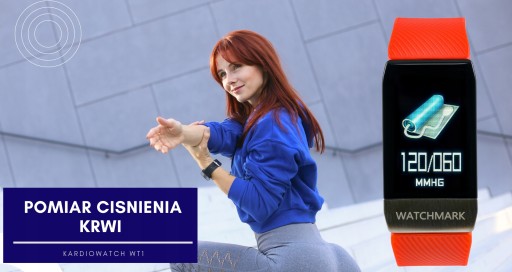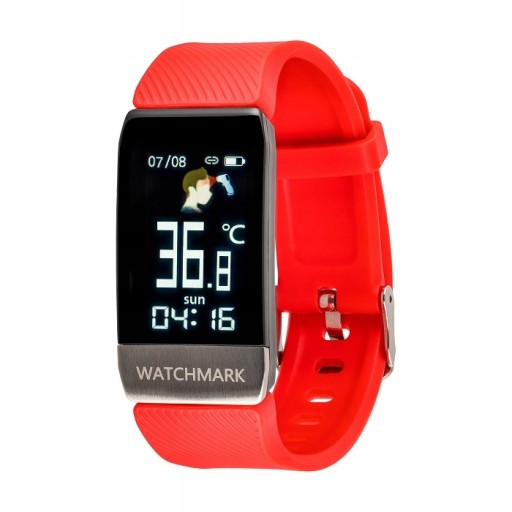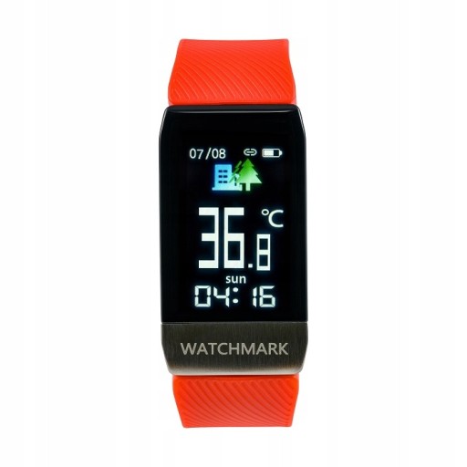 Profesjonalna Opaska Zdrowia Watchmark - Kardiowatch WT1 przeznaczona przeznaczona jest do pomiaru temperatury ciała i otoczenia. Zapewnia dokładny i wiarygodny pomiar w bardzo krótkim czasie. Zegarek, opaska jest nie tylko termometrem lecz także posiada pomiar ciśnienia krwi, analizę natlenienia krwi, przesiewowe badanie EKG oraz informuje o połączeniu przychodzącym na telefon i wiadomości sms.