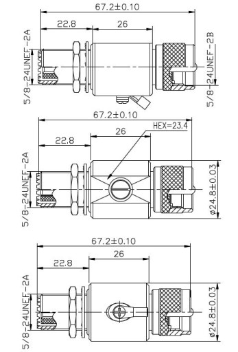 Wersja ze złączami typu UHF (gniazdo SO-239, wtyk PL-259). Izolator teflonowy, styki złocone.