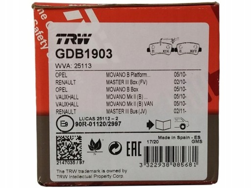 TRW GDB1903 KLOCKI HAMULC. OPEL MOVANO 1