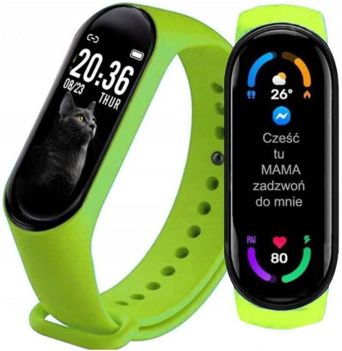 SmartBand M6 NAJNOWY MODEL OPASKI następca opaski M5 w języku POLSKIM posiada bardzo rozbudowany system powiadomień, który po połączeniu z telefonem pozwala na odczytywanie wiadomości z popularnych serwisów, jak np. Twitter, Facebook, Whats|App. Dodatkowo M6 pokazuje godzinę, datę, liczy kroki, spalone kalorie, pokonany dystans, mierzy czas, monitoruje puls, ciśnienie i natlenienie krwi. Ponadto mierzy jakość snu. Informuje użytkownika o przychodzących połączeniach telefonicznych, wiadomościach sms, wiadomościach tekstowych z wielu komunikatorów.
