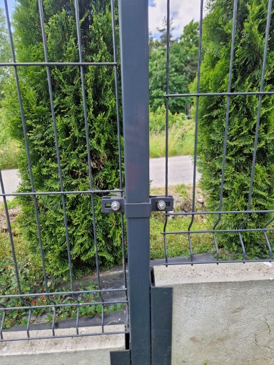 Obejma przelotowa kompletna do montażu paneli ogrodzeniowych na słupku.