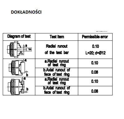 Dokładności ( bicie w różnych zakresach ) , oferta dotyczy modelu K01-50 .