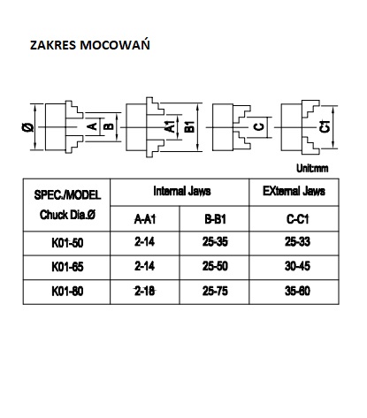 Przedstawiam zakres mocowania uchwytu do urządzenia , oferta dotyczy modelu K01-50 .