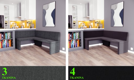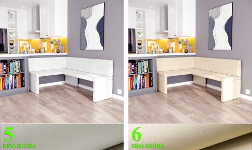 Narożnik kuchenny Olga jest w całości tapicerowany, wykonany w tkaninie lub eko-skórze o podwyższonej odporności na ścieranie. Nowoczesny design sprawia, że zestaw pasuje zarówno do kuchni czy też jadalni, ale również do minimalistycznego salonu.