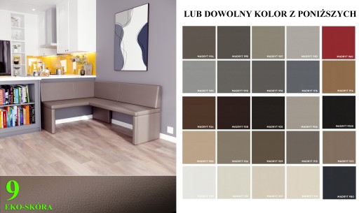 Obicie wykonane w Eko- skórze Madryt renomowanej firmy Davis, zgodnych z parametrami i charakterystyką materiału podaną w naszej ofercie.