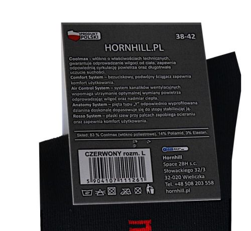 - (2) AIR CONTROL SYSTEM - strefa oddychająca oparta na projekcie siatki ( górna część skarpety, na wysokości stopy) -poprawiająca cyrkulację powietrza, ułatwiająca odprowadzanie wilgoci na zewnątrz skarpety