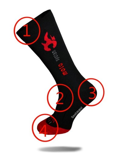 - (1) COMFORT SYSTEM - w górnej części skarpet znajduje się bezuciskowy ściągacz zapewniający komfort użytkowania.
