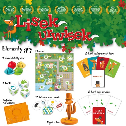 Gra posiada wyjątkowe elementy gry: specjalne kostki ze śladami lisa, pionki detektywów oraz detektor – specjalny sprzęt detektywa pozwalający zidentyfikować poszukiwanego lisa!